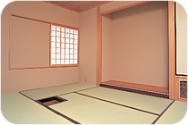 40畳敷きの広さ。お琴やお花の家元先生の指導で、精神を清めます。
