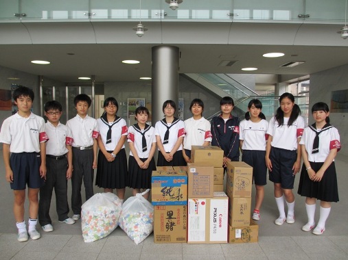 生徒会活動の一環として、ペットボトルのキャップ集めを行っています。本部役員が中心となって取りまとめをし、業者に渡しました。