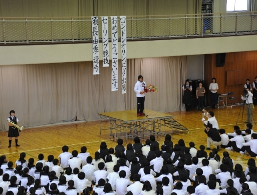学生時代の思い出とともに、ロンドン五輪に向けての思いを話していただきました。中学生も熱心に耳を傾けていました。
