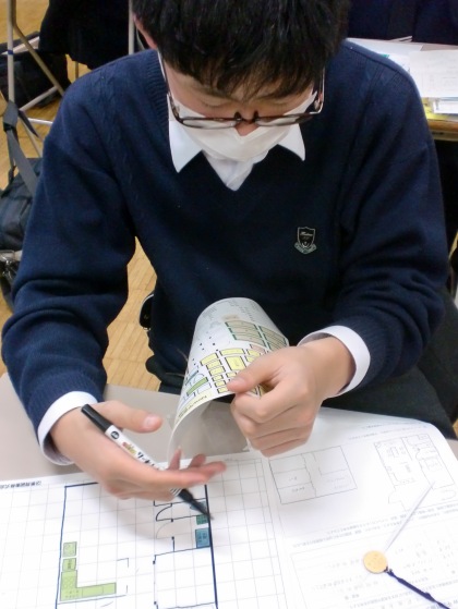 家族構成や動線などを考え、家具のシールを図面に張り構成していきます。それぞれの目的に合った理想の家を設計することができました。