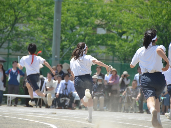 クラス対抗戦であるリレーと大縄では、大変白熱した戦いになっていました。また、小学生も中学生と が一緒に参加する種目は、中学生がリードしてあげることが出来ました。
