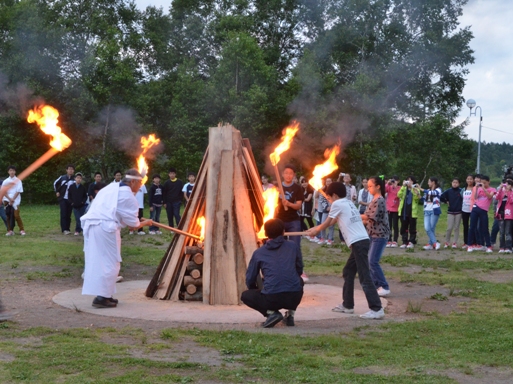 2日目の夜は、キャンプファイヤーをしました。各クラスで出し物をしたり、皆で火を囲んで歌を歌って楽しみました。