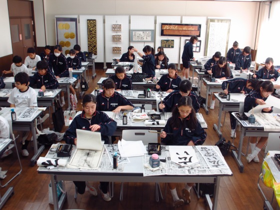 全学年ともに書初めを行います。どの生徒もお手本を見ながら集中して書いています。