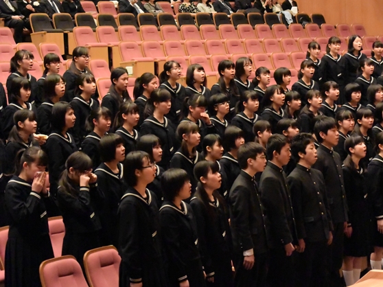 「在校生答辞」では3年間の思いを込めて卒業生代表の生徒が読み上げました。